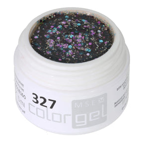 Con el #327 Premium-GLITTER Gel de Color 5ml, un gel transparente con mezcla de purpurina plateada, turquesa y acentos lilas, transformarás tus uñas en un verdadero foco de atención.
