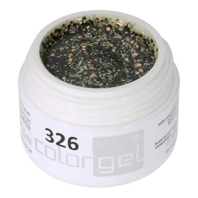 Pour les professionnels et les passionnés de beauté – #326 Gel Couleur PAILLETTES Premium 5ml Gel transparent avec un mélange de paillettes argentées, cuivrées et noires aux accents irisés.